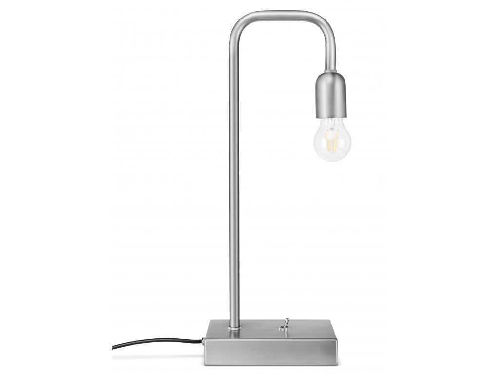 Minimalistická stolní lampička s objímkou na žárovku, poniklovaným vypínačem a textilním nebo PVC přívodním kabelem. Toto krásné svítidlo se vyrábí ručně v Německu.