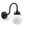 Ručně vyrobená nástěnná lampa s funkčními detaily je vhodná do venkovních prostor. Lampa má hlavu z litiny, kulatou krytku z mléčného skla a několik volitelných ramen.