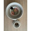 Použité materiály: základna svítidla je vyrobena z technického porcelánu, šroubovací krytka je z lisovaného mléčného skla.