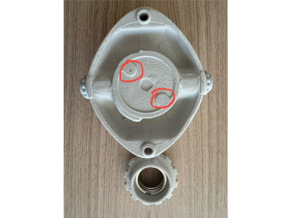Možná montáž na strop i na stěnu. Základna má dva otvory pro vedení kabelu po zdi. V případě že preferujete přívodní kabel schovaný za svítidlem, je možné použít předpřipravené otvory v těle základny, které je třeba prorazit šroubovákem, případně odvrtat. Detailně odfoceno v obrázcích.