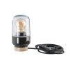 Stolní lampička s dřevěným podstavcem, porcelánovou základnou, skleněnou krytkou a textilním kabelem. svítidlo se skleněnou krytkou splňuje vysoké nároky na formu i funkci. Skandinávský design svítidla hledá inspiraci v tradičním japonském porcelánu.