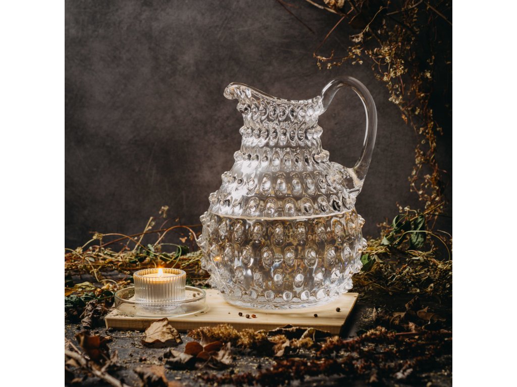Ručně vyráběný džbán Polka Dot s originálním designem a nezaměnitelnou strukturou. Vyrobený z bezolovnatého křišťálu, vhodný na vodu a nealkoholické nápoje. Jasných barev bylo docíleno specifickým složením skloviny.